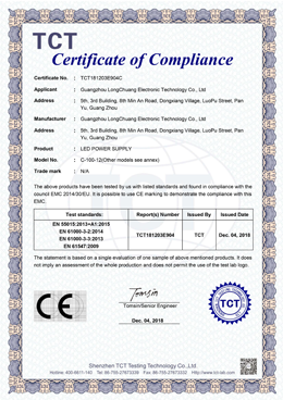 廣州龍創電子科技有限公司 成立于2009年專業從事LED AC-DC開關電源及驅動電源的開發、生產及銷售。公司座落于廣州番禺,交通便捷。廠區面積4000平方米;年產能100多萬臺。產品已獲得CCC 、CE&RoHS等證書,遍布國內外市場,遠銷全球,如歐美、南美、中東、東南亞及港臺等60個國家和地區,在行業內享有一定的知名度。